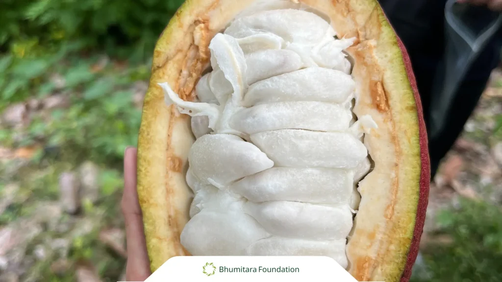 The plantation is home to several cacao varieties, with MCC02 as the dominant crop, supported by Sulawesi 2, BB01, and the newly planted ICCRI09. A small number of local varieties add to the diversity of the plantation. Most seedlings are sourced from cacao farmers in Luwuk Timur, South Sulawesi, with each costing around IDR 10,000–15,000. This careful selection ensures the plantation continues to grow with high-quality, productive plants.